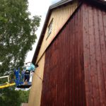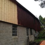 I Lindenes fikk vi en låve i oppdrag. Her tok vi av all taksteinen, rettet opp taket og la nytt tak, i tillegg skiftet vi kledning og malte låven. Les mer om hva vi tilbyr innenfor bygging og montering her.